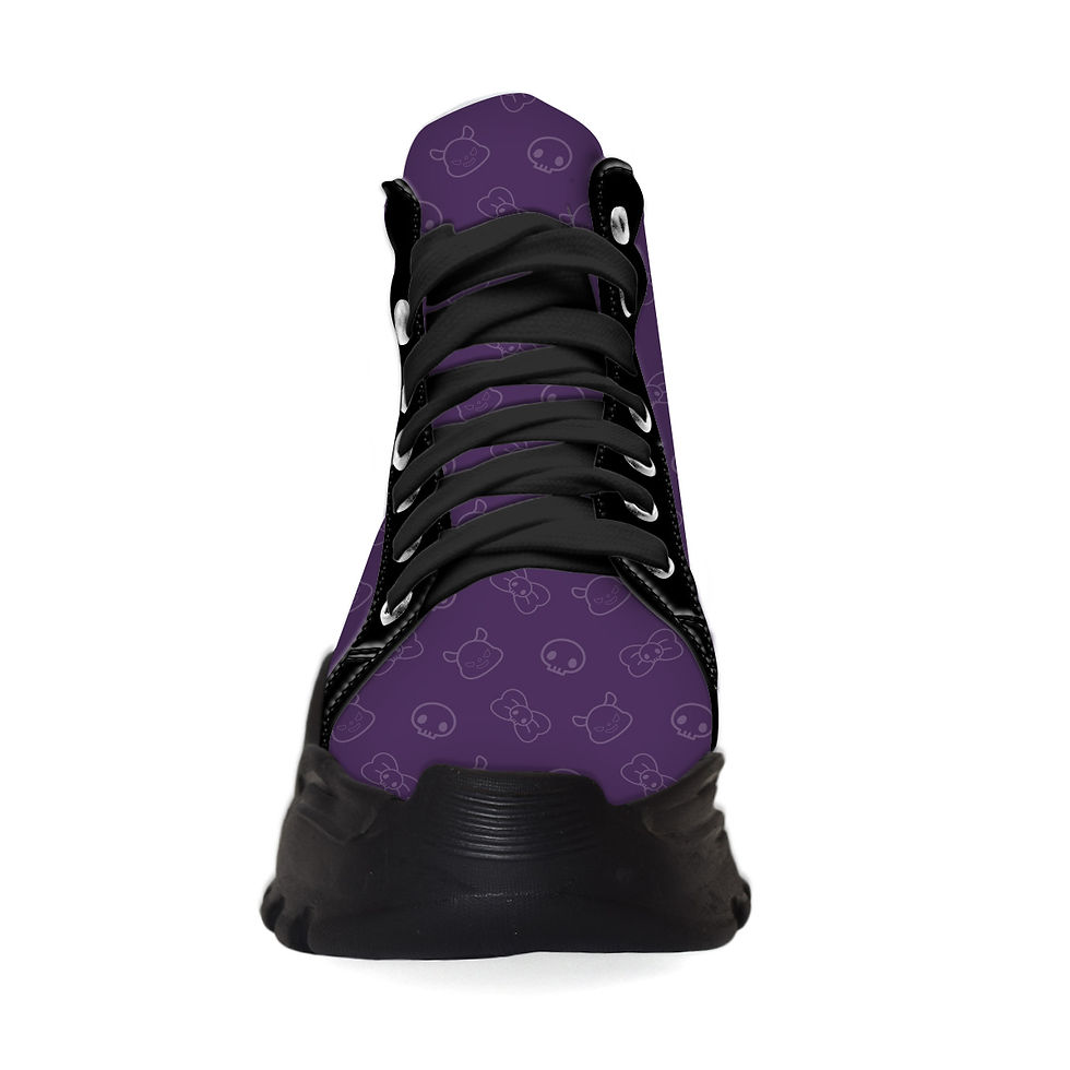 Tenis Kuromi con Calaveritas Violeta Bota Chunky Con Suela Negra