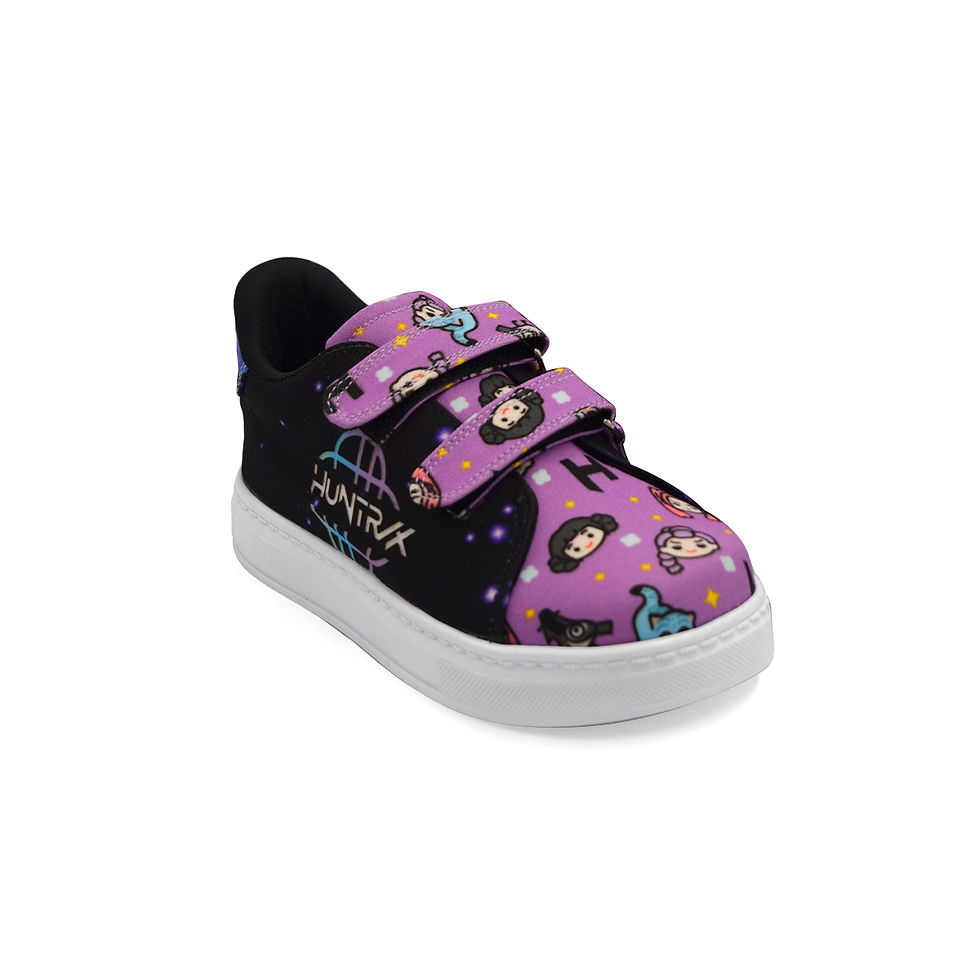Tenis de Huntrix Logo y Chibis Negro K-Pop Demon Hunters Velcro
